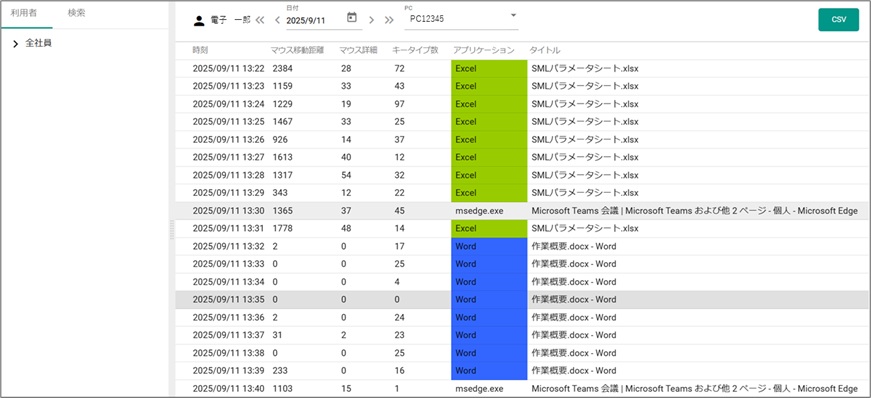 1分毎の操作内容を表示, アプリケーション種別やアクティブウィンドウのタイトルが分かり,業務内容の把握に役立ちます 宅男视频在线。