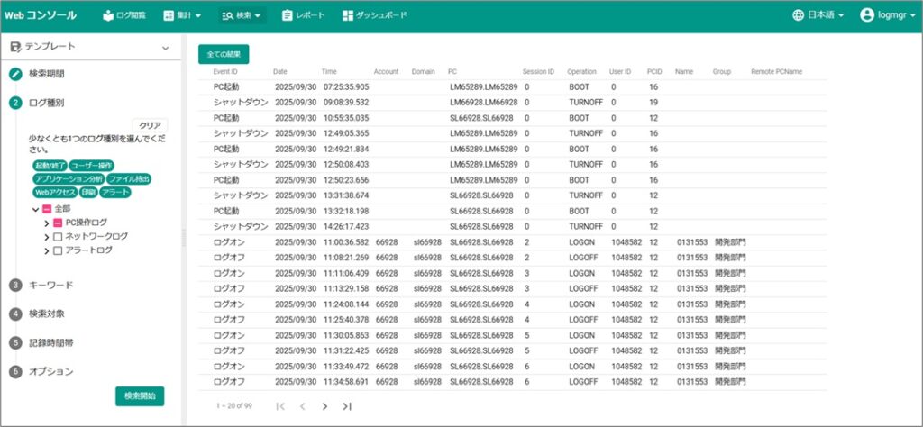 期間・種別・キーワード・検索対象から条件を指定してログを検索,よく使用する検索条件をテンプレートとして保存することで 宅男视频,必要なログを効率よく抽出することが可能です。